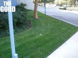 It can be done if you train the roots deep. Water restrictions in Los Angeles have made it illegal to water more than twice per week. You can have a green lawn if you follow the suggestions about deep and spaced out watering that I have been preaching for the last 20 years. The proof is in the pictures. The pictures are of lawns Garden View maintains in the Monterey Hills area and of some our competitors maintained lawns in the same community.